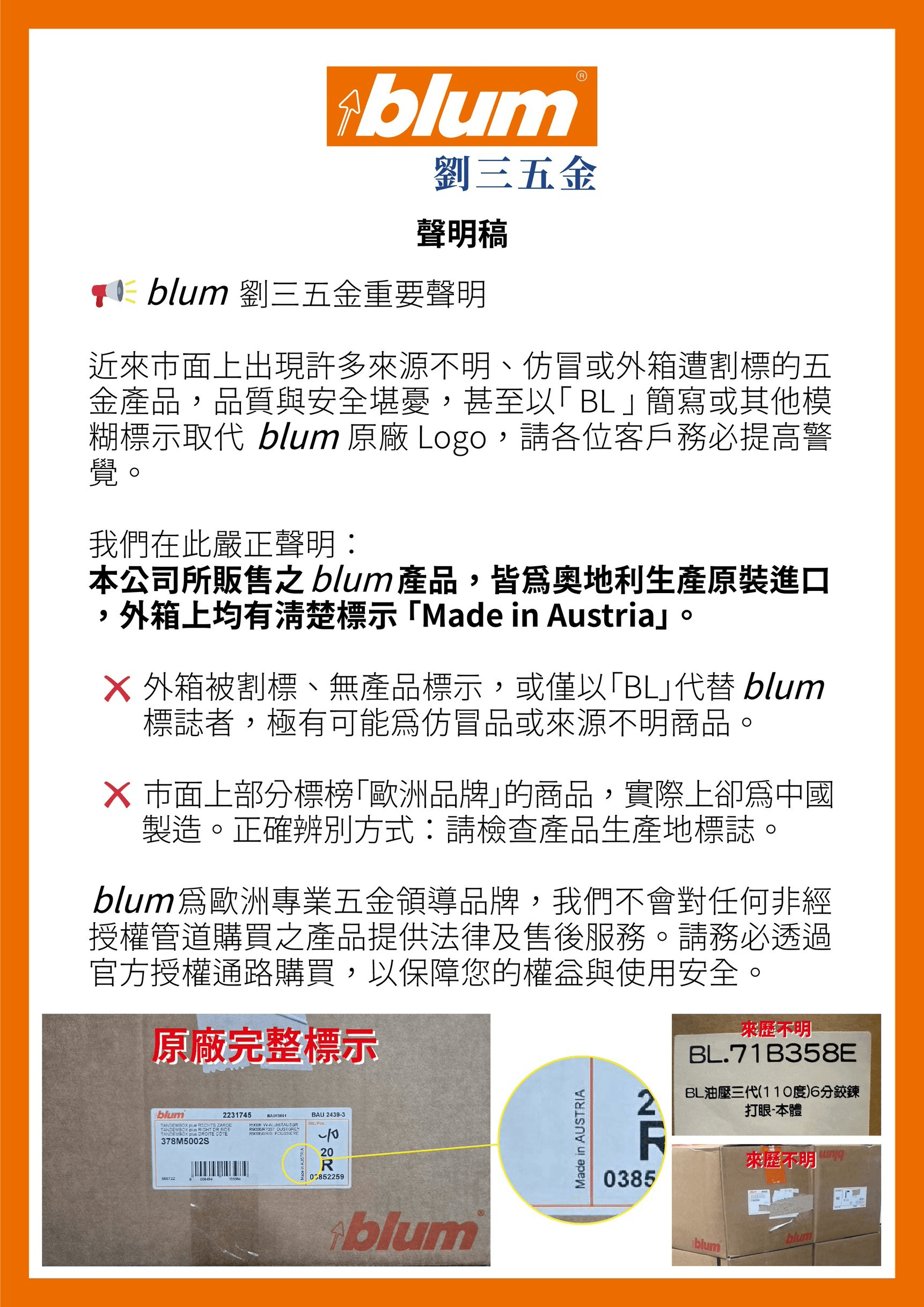 近期有偽造blum logo的仿冒品流入市面,緩衝背包的仿冒品最為氾濫。 請消費者多加注意:請勿購買來路不明的blum五金產品,以免損害自身權益 ‼️ 劉三五金為獨家奧地利blum五金台灣唯一總代理,透過本公司訂購才能享有最完整的保障以及售後服務。