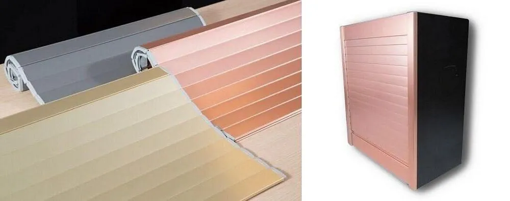 | 義大利進口鋁捲門 產品說明: 歐洲進口通風鋁捲門,能與櫃體完美地結合,有多種顏色及款式,不僅能與廚具或浴櫃搭配使用,於家居傢俱或辦公傢俱上,更能呈現出與眾不同的質感。創新的迷你型捲門結構,鋁合金材質非一般塑膠背板,輕巧優雅,強壯堅固,門片銜接處為金屬,不易斷裂,安裝簡易,能直接與櫃體組合。 產品特色: 特殊獨家通風捲門設計,能讓內部的電器設備所產生的熱空氣透散出來,以及能讓儲存食物的區域保持通風,以減少發霉或潮濕的狀況。 產品規格: (1) 適用櫃體W60xH140cm (2) 適用櫃體W90xH140cm 安裝方式:捲軸式安裝 |