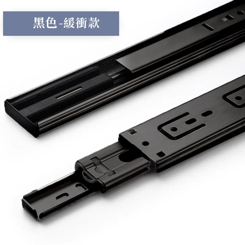 不鏽鋼三截式走珠緩衝滑軌 20cm (不鏽鋼/黑)