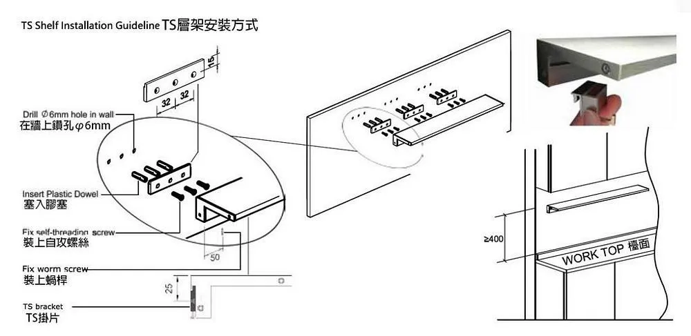 ※若背牆無玻璃材質,玻璃要預先按產品的安裝位置鑽適合的螺絲孔,另外請留意玻璃背後牆身能裝上膨漲螺絲(請參考目錄上的安裝圖) |