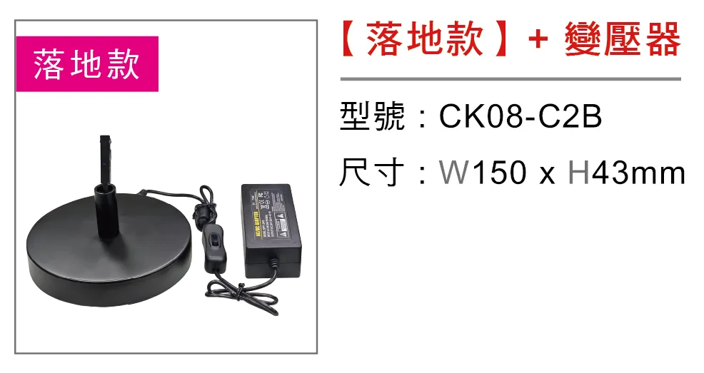 型號 : CK08-C2B尺寸 : W150 x H43mm備註 :。需搭配【超薄磁吸珠寶軌道-柱狀式】使用 。已附上變壓器與插頭,無須額外購買輸入模塊