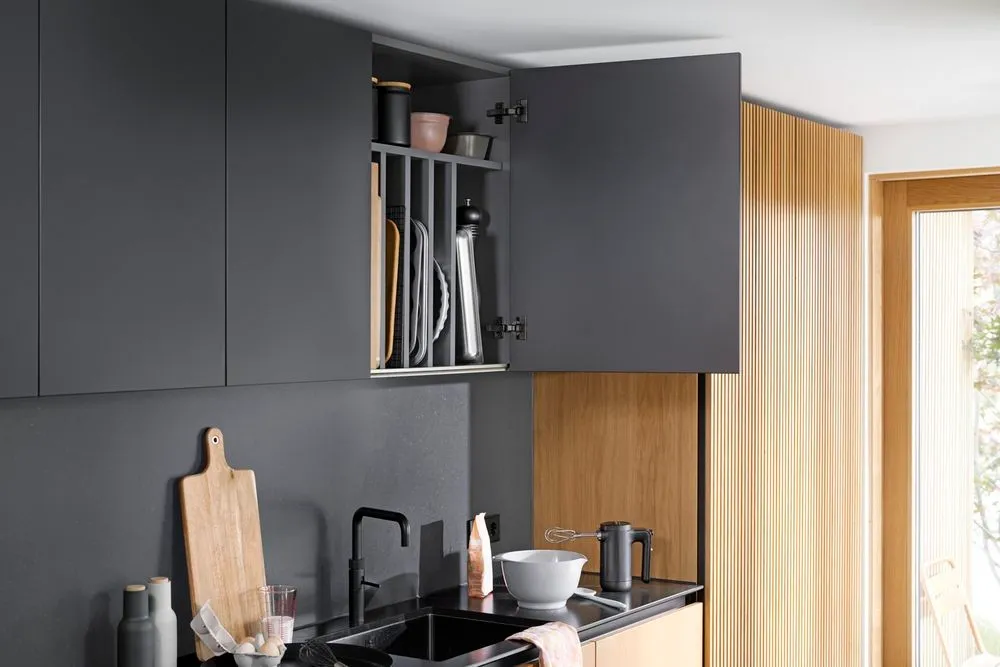 最適合用來搭配暗色家具古典優雅,瑪瑙黑的鉸鏈和諧地與家具融為一體並突顯出家具風格,為了高品質家具更多的設計自由度,在設計上決不妥協clip top blumtio頂級快裝集成阻尼鉸鏈,一應俱全。