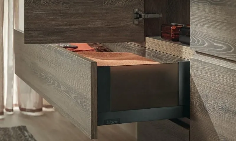 blum 頂級快拆緩衝鉸鍊具有創新、領先國際設計的內建緩衝技術,在於將blumotion緩衝阻尼內置於鉸鍊杯中,成熟的技術帶來高效的運動性能,不漏油不易壞,通過開關120,000次檢驗測試。讓微小的鉸鍊杯空間內實現高度舒適的操作性能。且鉸鍊深度只需11.5mm,所以也能應用在15mm厚的櫃門上。無論面板 - 尺寸、大小、輕重,搭配 blum 頂級快裝內建緩衝鉸鍊,都能輕柔靜謚的關合。獨家研發鉸杯處的緩衝開關,可隨時取消、關閉鉸鍊的緩衝功能,即使是小而輕的櫃門片,也能輕鬆安靜的緩衝閉合。
