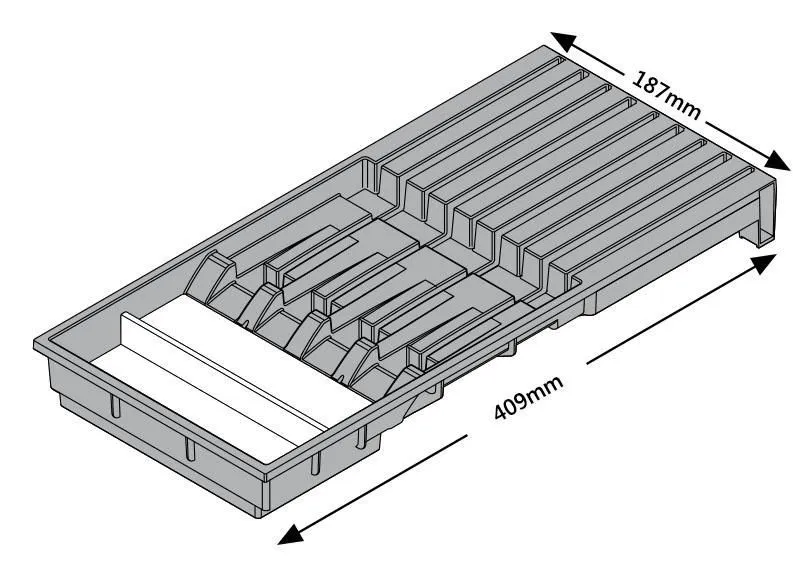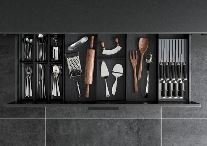 可與麗拉抽內分隔其他配件做搭配,自由規劃出想要的空間分配,能與裁模器、刀叉盤、分隔框等搭配使櫃內井井有條。