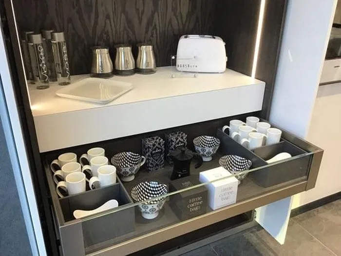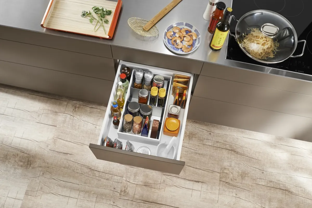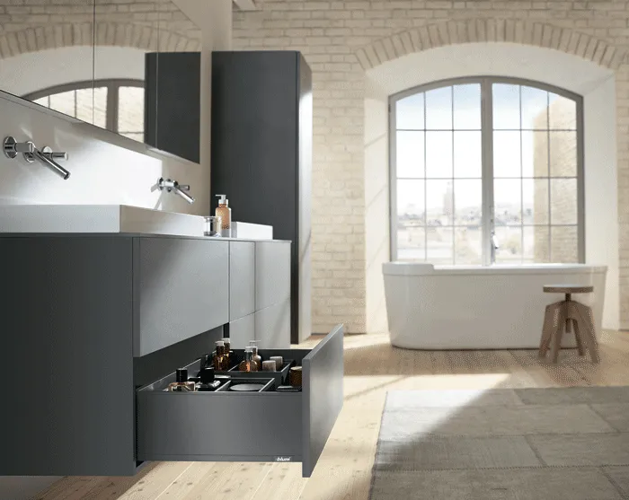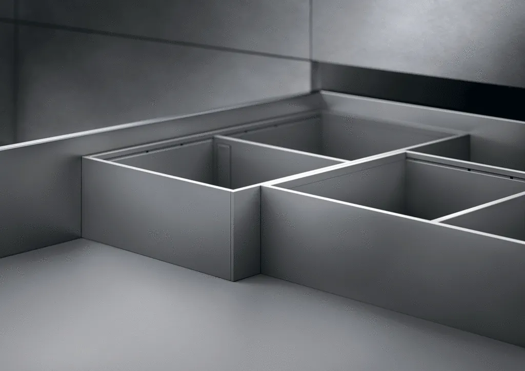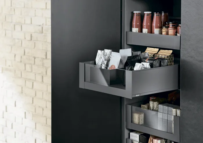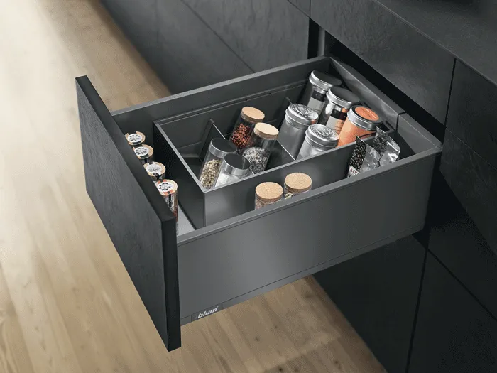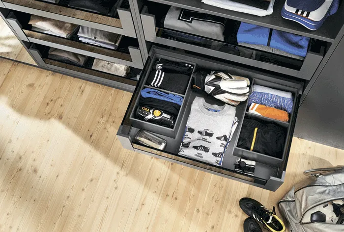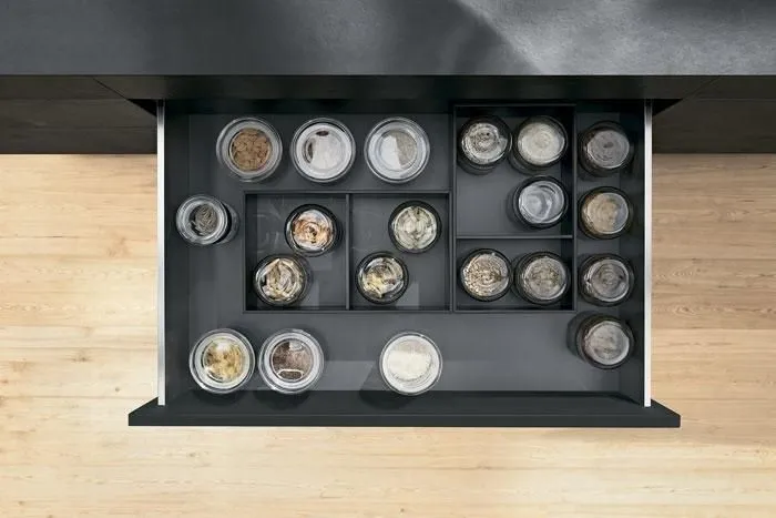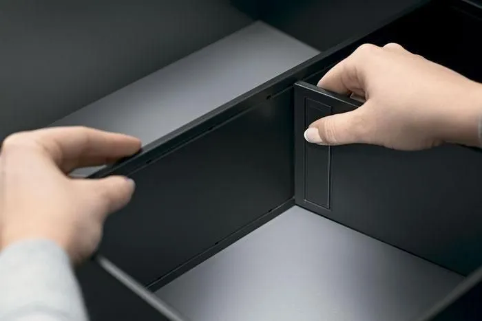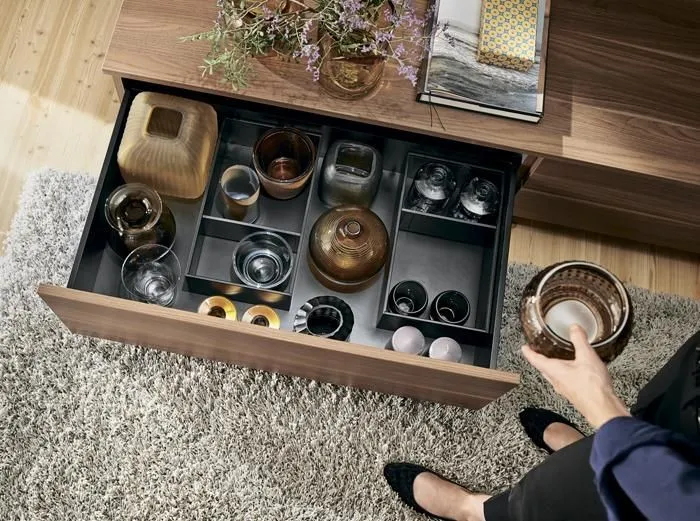 AMBIA-LINE 內分隔框配件系統憑藉其超薄的精細設計以及多種調節使用方式而備受稱道。通用邊框專為LEGRABOX抽屜系統而設計,確保在任何居住區域都能實現完美的布局。邊框可靈活使用並布局清晰,這就為家具內部空間的組織,安排提供了極為靈活的規劃空間,同時也為日常應用提供了實用的功能性。由高品質鋼材所製成的、應用靈活的分隔框實現了最大的靈活性和強大的功能。