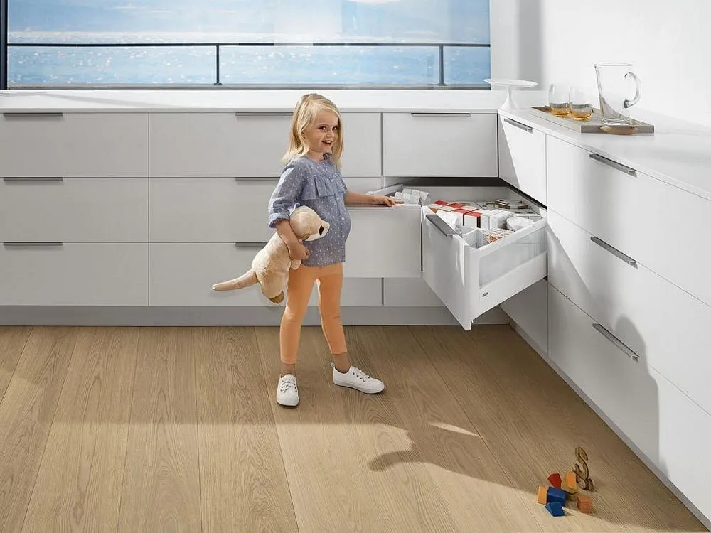 無論是搭配直桿還是加高側牆的抽屜,TANDEMBOX antaro 方桿金屬抽系列代表的是一種明朗、稜角分明的外觀風格。所有的零件在顏色上是互相匹配的,意在突出純粹的產品設計風格。
