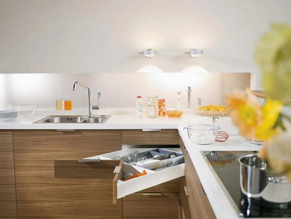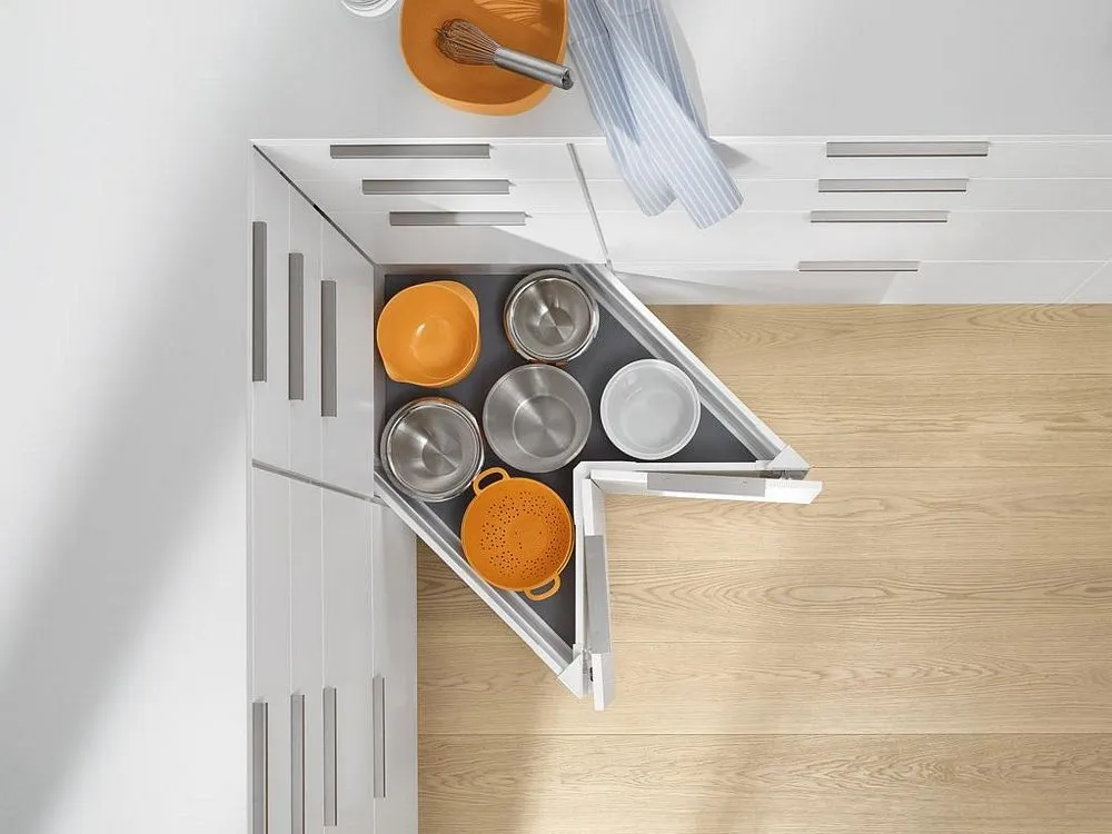 豪華金屬方桿抽屜的滑軌同樣是搭配BLUMOTION 緩衝阻尼,抽屜拉開時,滑順平穩,抽屜關閉時,輕柔緩衝安靜。使用壽命長,經過十萬次以上的開合耐用測試。不僅外型時尚美觀,更具實用性。