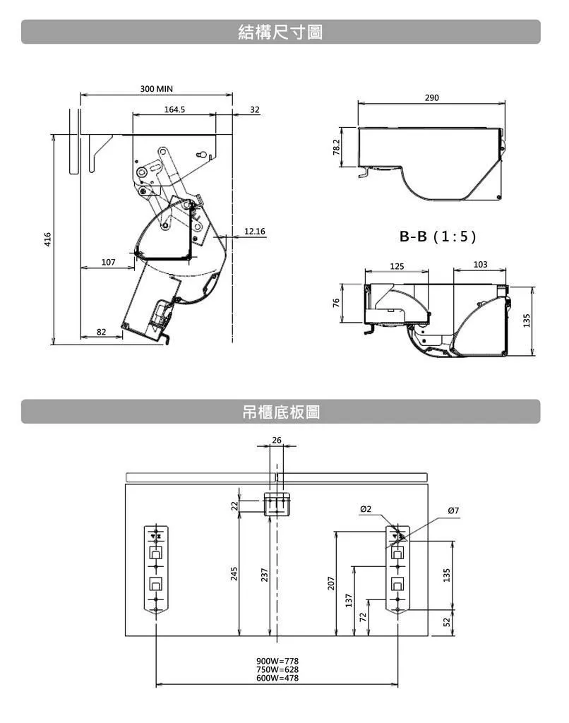 適用櫃寛為60、75、90公分,顏色有淺灰色及霧黑色兩種。