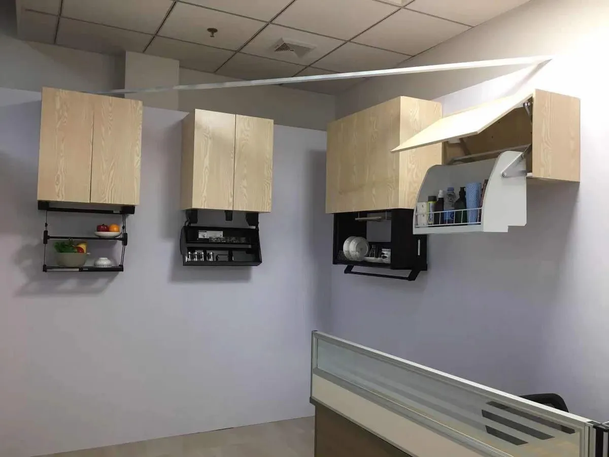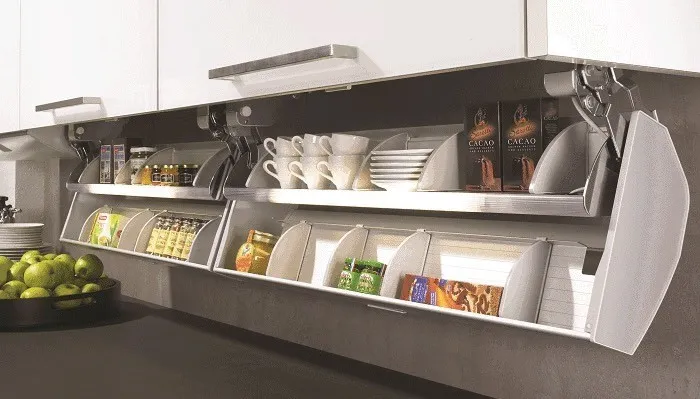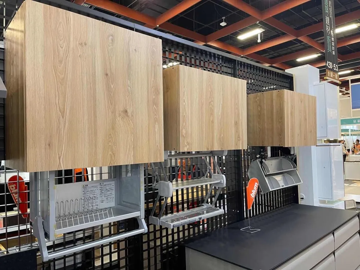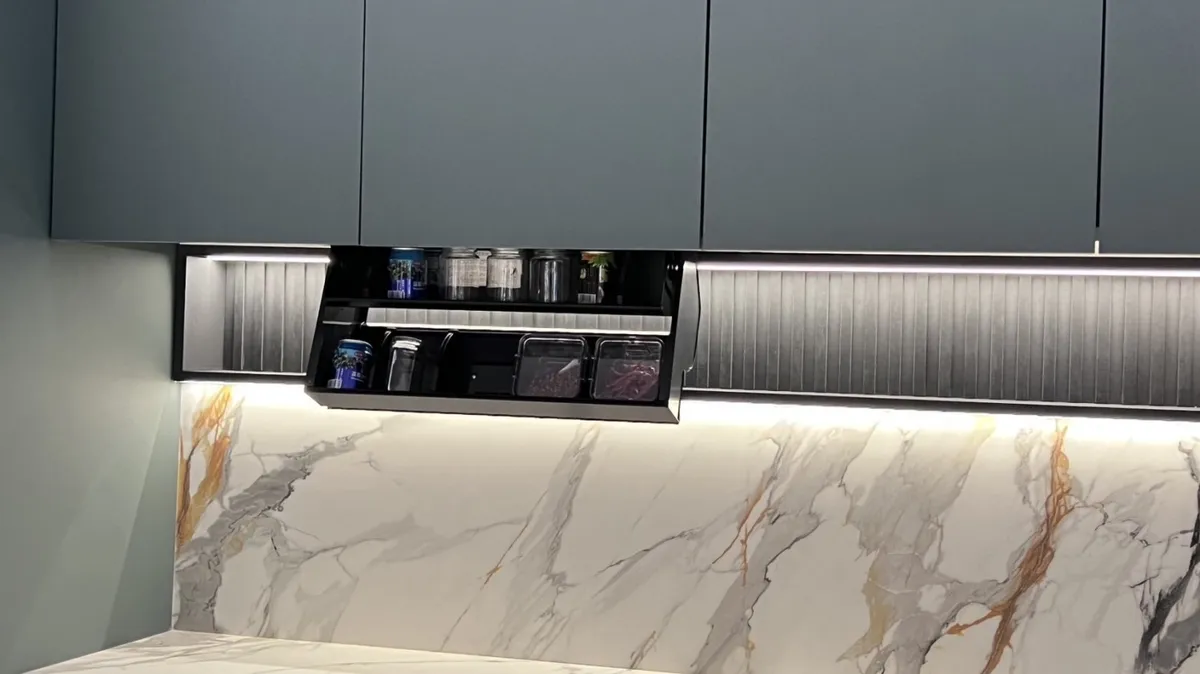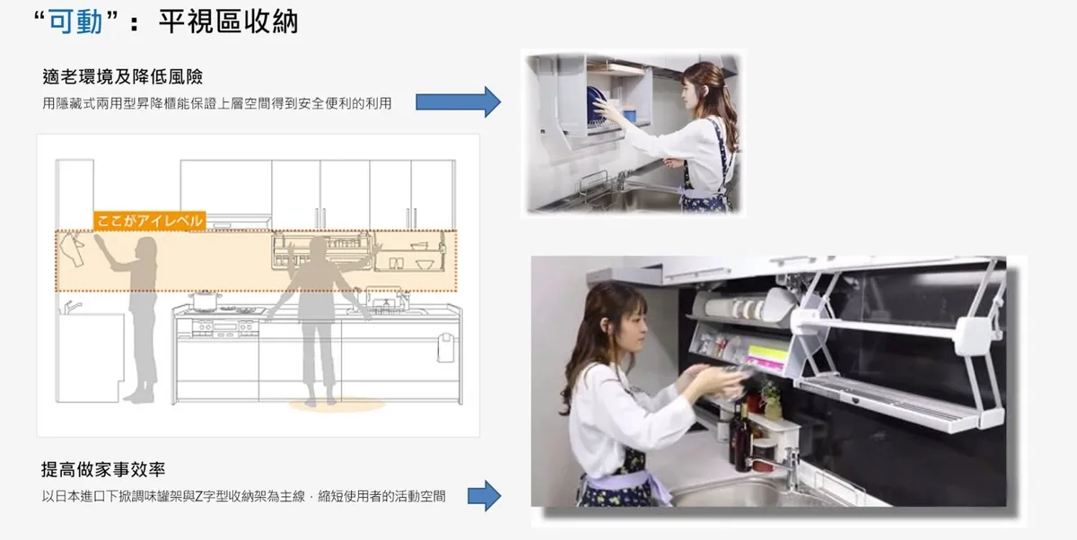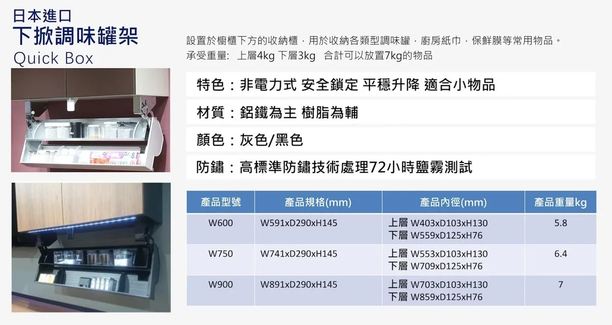 將其安裝於視線高度(即站立時平視),取物非常方便。不使用時,將罐架收納回櫥櫃下方,既實用又美觀。
