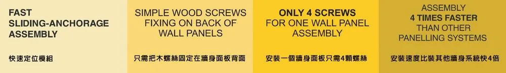 如果要轉換整體效果,牆身壁板一天時間內, 便可換出不同牆物色調,特別適合商業空間,能隨時搭配不同時期的景物設計。