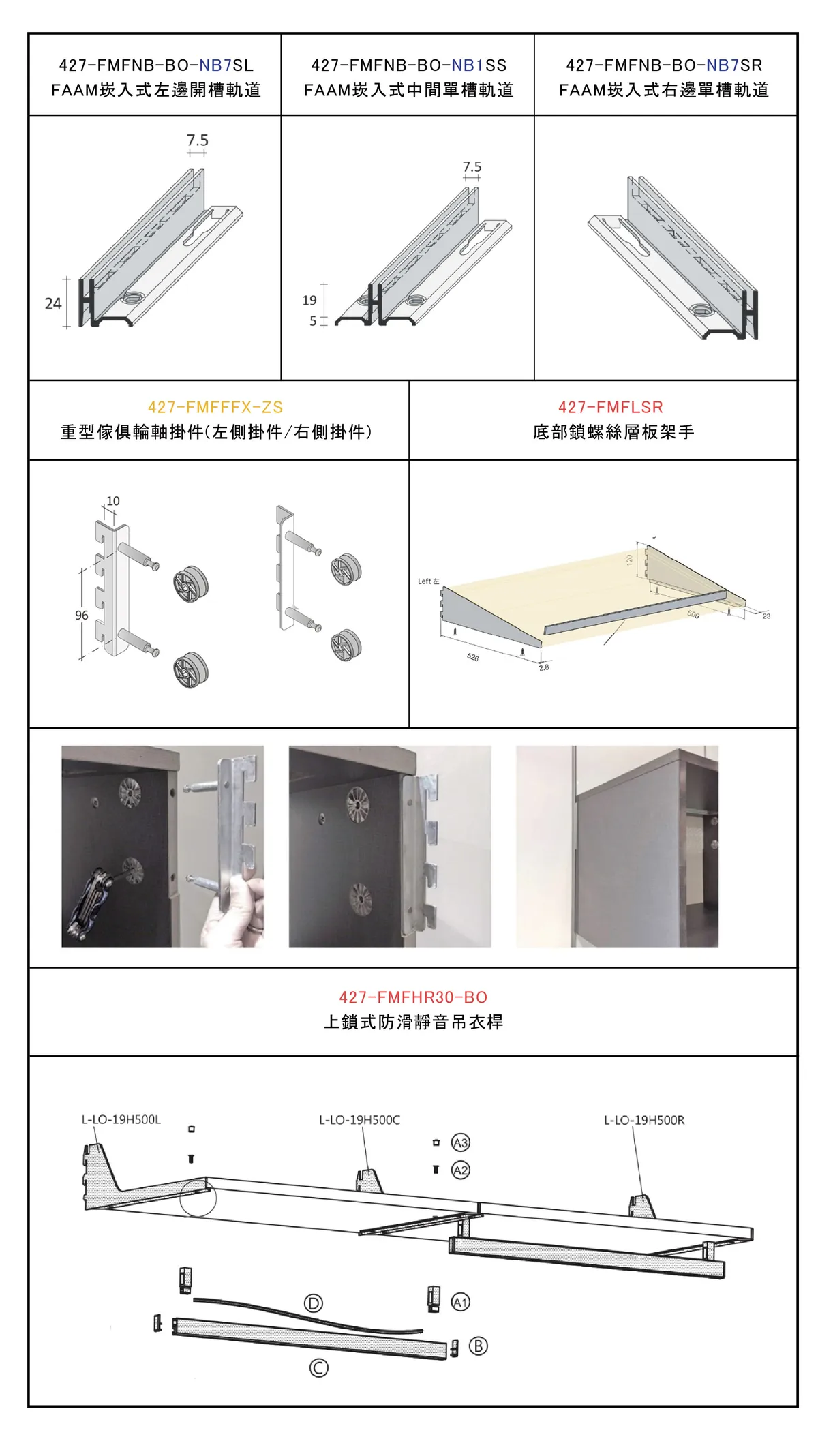 | FAAM崁入式左邊開槽軌道NB7 | FAAM崁入式中間單槽軌道NB1 | FAAM崁入式右邊開槽軌道NB7 |
