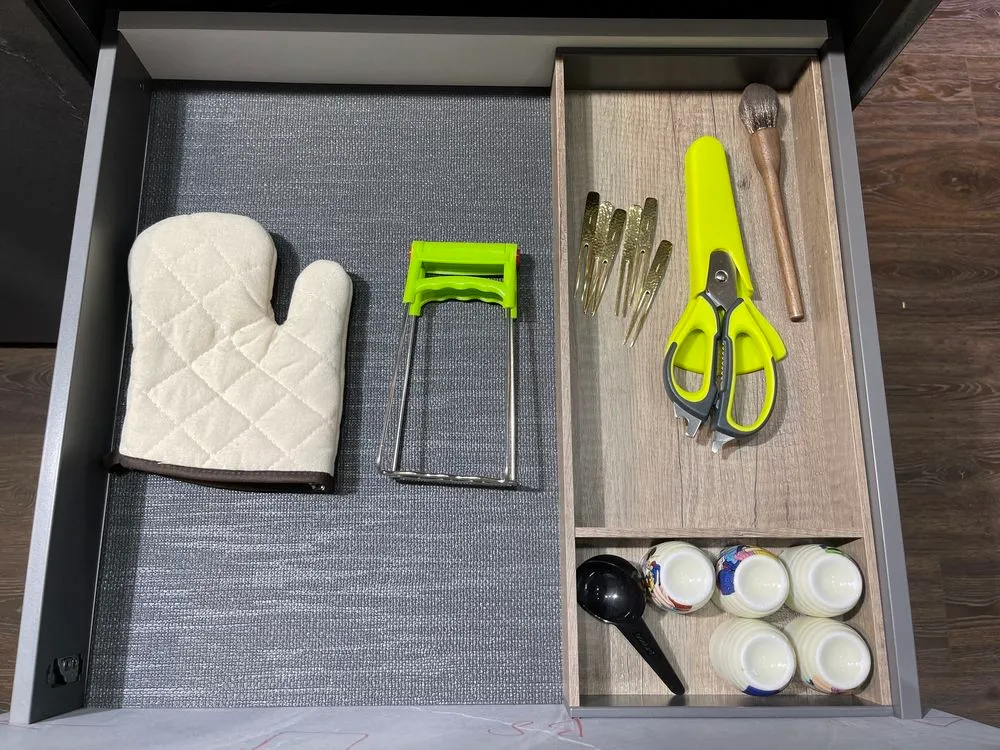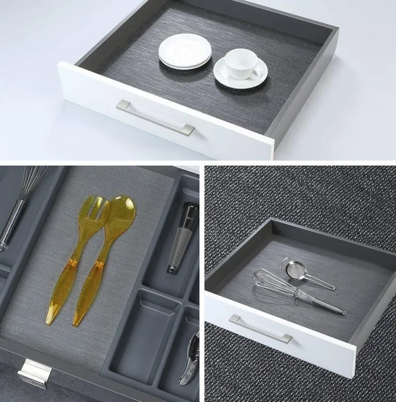 | AGOFIBER纖維紋型止滑墊(玄武岩深灰色): 是一種由天然橡膠和合成橡膠製成的新型獨特設計。 紡織品結構產生了非常高的防滑係數,可防止廚房用具,如盤子,鍋碗瓢盆在廚房抽屜中滑動。 AGOFORM十字織布紋止滑墊(淺灰色): 為高級橡膠的材質,並可在拉出式和轉盤式貨架上使用。 當打開和關閉抽屜或轉盤架旋轉時,防滑表面可防止物體滑動。 AGOFIBER纖維型尺寸: w1121*d473*1.2mm (適用櫃寛120公分) w 821*d473*1.2mm ( 適用櫃寛90公分 ) w 521*d473*1.2mm ( 適用櫃寛60公分 ) 防水、防止物體滑落、撞擊、損壞和污垢。 |
