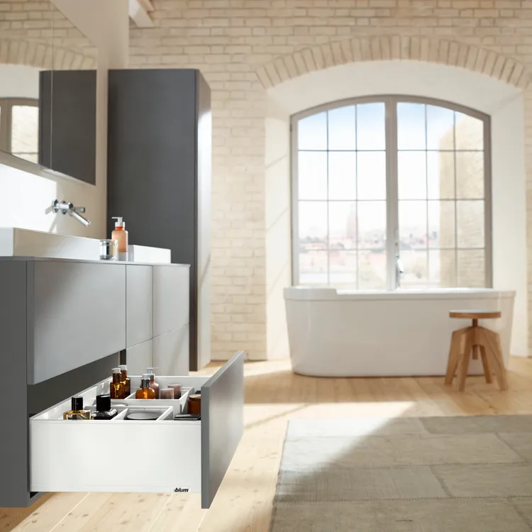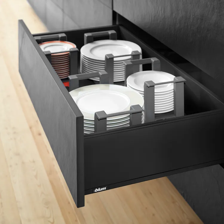 作為一種設計元素,高面板越來越重要。為了迎合這種設計趨勢,LEGRABOX 超薄麗拉金屬抽屜系列,新的面板固定件,確保抽屜開合過程中的穩定性。