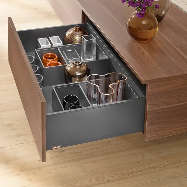 纖細的直線型設計、高質量的動感使這款優雅的抽屜系列尤為出眾。簡約的設計早已榮獲多項國際大獎。 LEGRABOX 超薄麗拉金屬抽屜就像住宅主題一樣具有多面性,適用於所有居家空間和應用範圍。全新的LEGRABOX 麗拉滑軌系統,因其為全拉式抽屜且負載能力強而備受客戶青睞。由於下垂度低,可在與距離地板在近的位置安裝LEGRABOX麗拉超薄金屬抽屜系列滑軌。有40kg和 70kg 的動態載荷,即使對於較寬而且負有重物的抽屜,滑軌也能輕盈滑動。