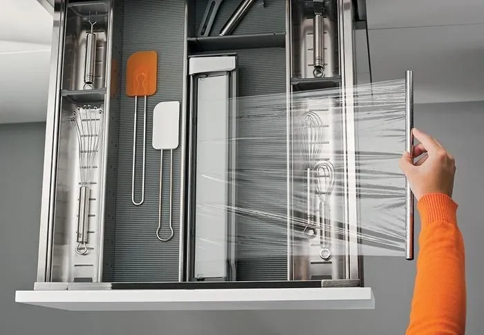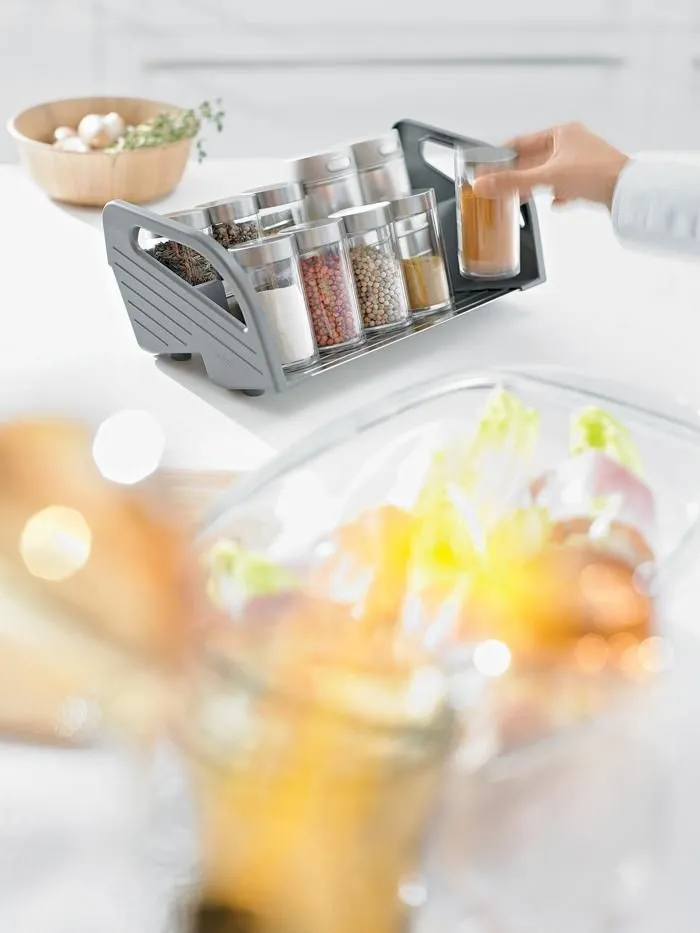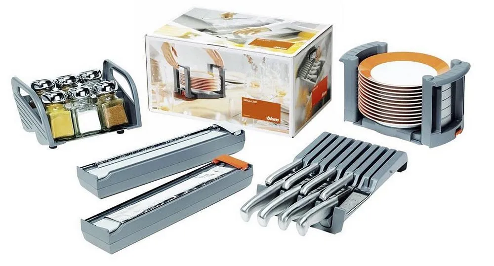 blum 完美夢幻廚具配件組(五合一包裝),讓您一次擁有廚房所需要的實用配件 內容包含: 胡椒罐架、 保鮮膜截切器、 鋁泊紙截切器、不鏽鋼刀具架、伸縮置盤架 胡椒/調味罐架 保鮮膜截切器 鋁泊紙截切器 不鏽鋼刀具架 伸縮置盤架 操作影片