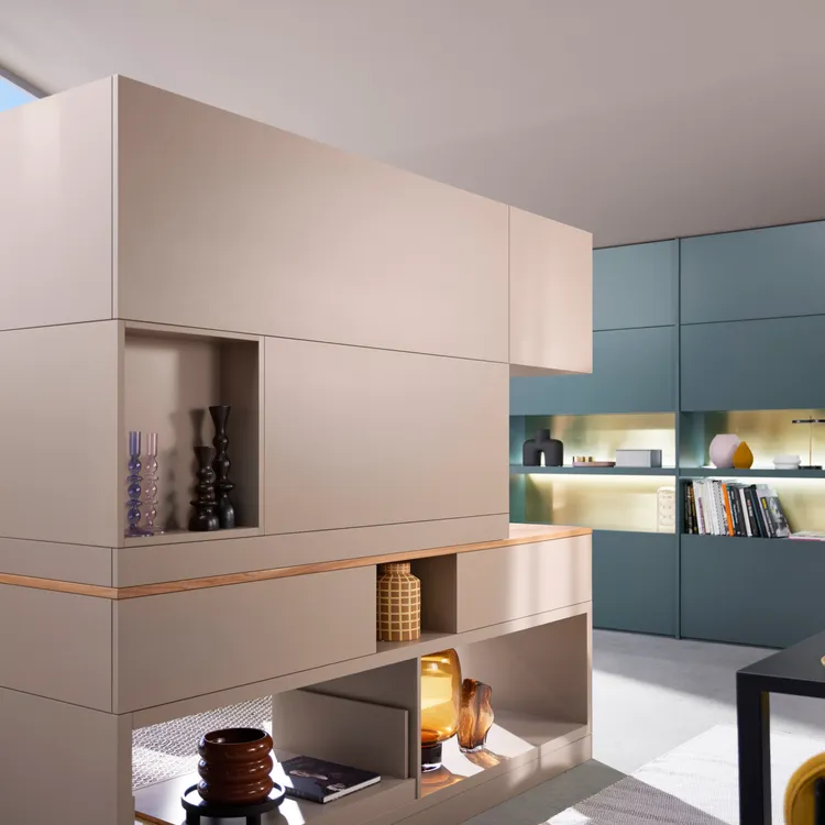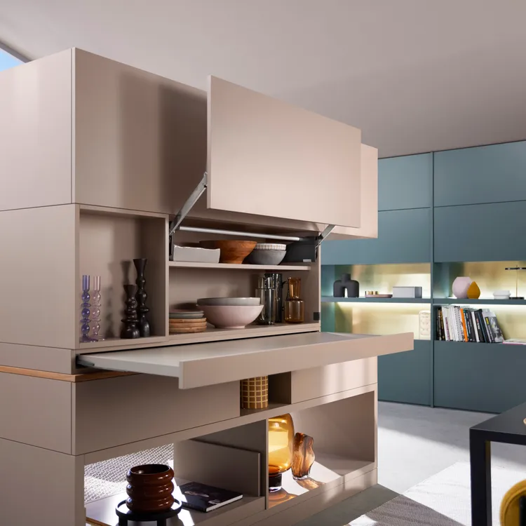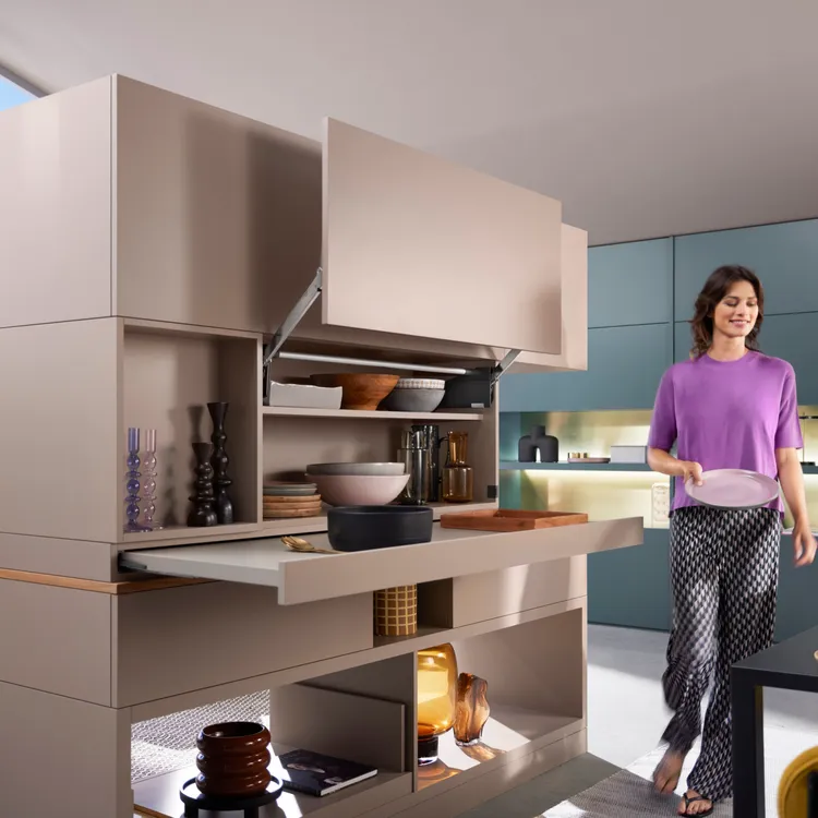 配備Blum的動感科技BLUMOTION緩衝、TIP-ON BLUMOTION緩衝電動拍拍和TIP-ON手動拍拍,大大提升層板的運動舒適性。