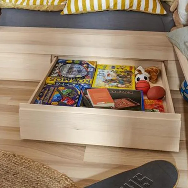 為了搭配 TANDEM 全拉式隱藏靜音木抽滑軌系列,針對層板我們開發了一款實用的鎖定裝置。它外觀低調,節省空間,能把層板牢牢固定在抽出的位置。