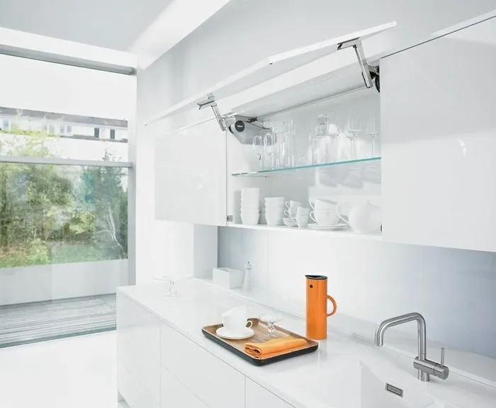 輕壓開啟:只需輕輕用手或肘部按壓,就可打開面板。面板較大或較重,向上也能輕鬆打開。不僅方便了您的工作,也為廚房設計創造更多的可能性。