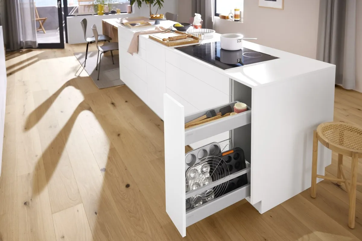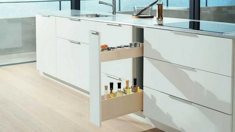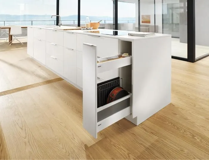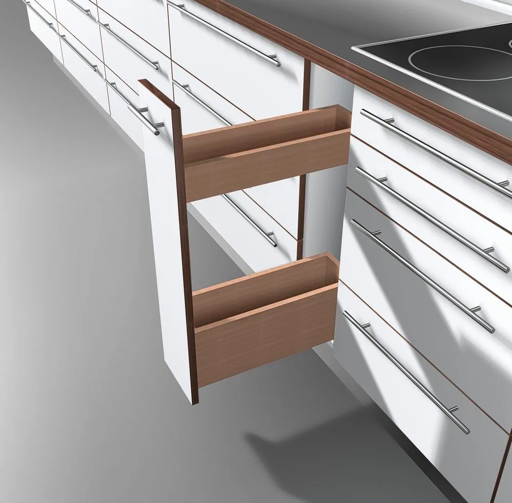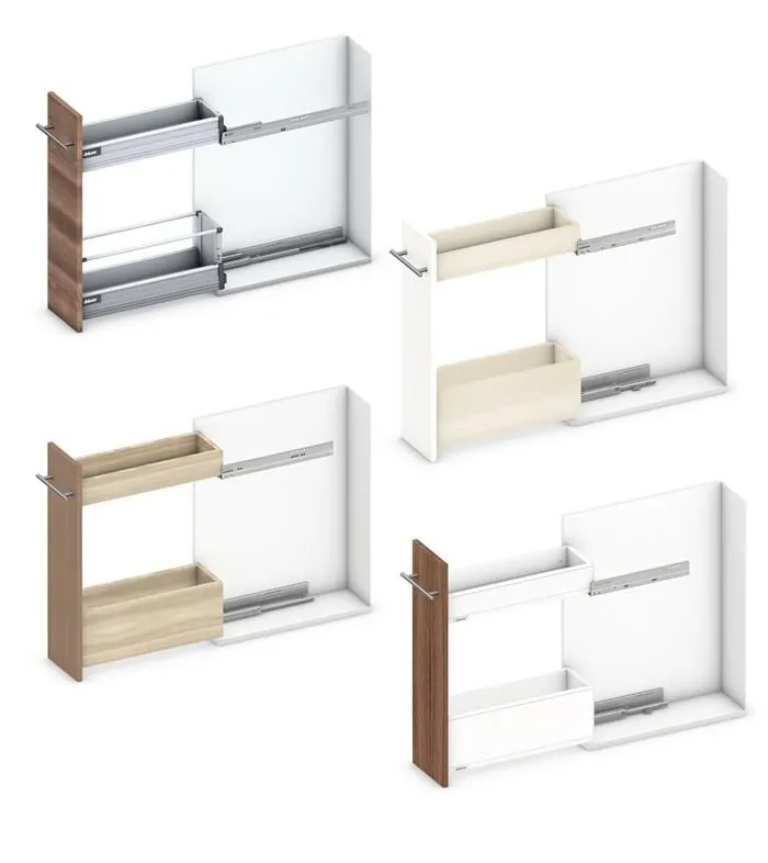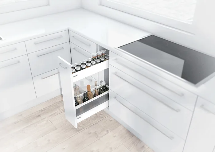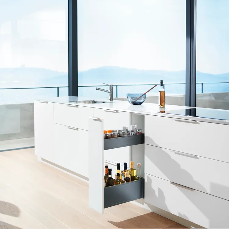 blum 針對超窄櫃體提出的創意能夠幫您利用到廚房內最狹窄的收納空間,而且您還不用放棄對穩定性和操作舒適性的追求。