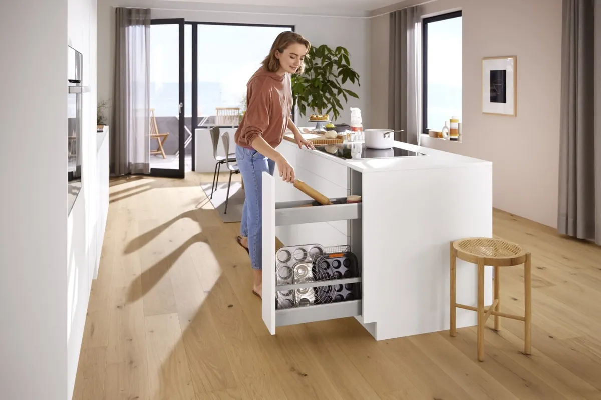 2. 高側邊穩定性和高負載: 安裝 blum 的軌道能夠提升抽屜的穩定性,而且抽屜承載最重可達30kg。物品可以輕鬆收納在此。