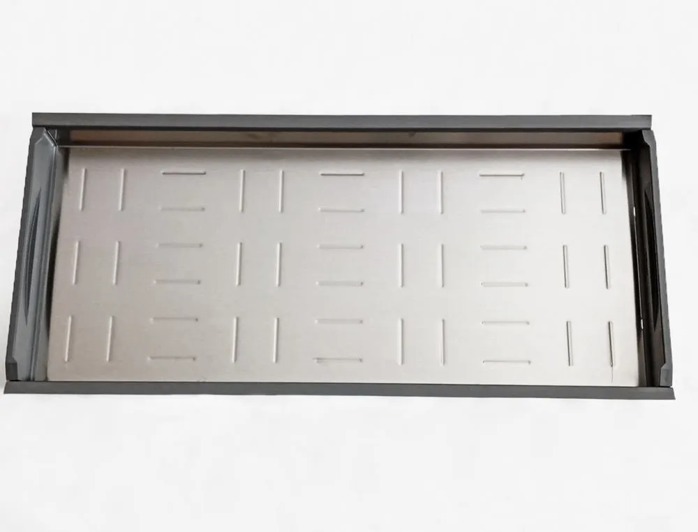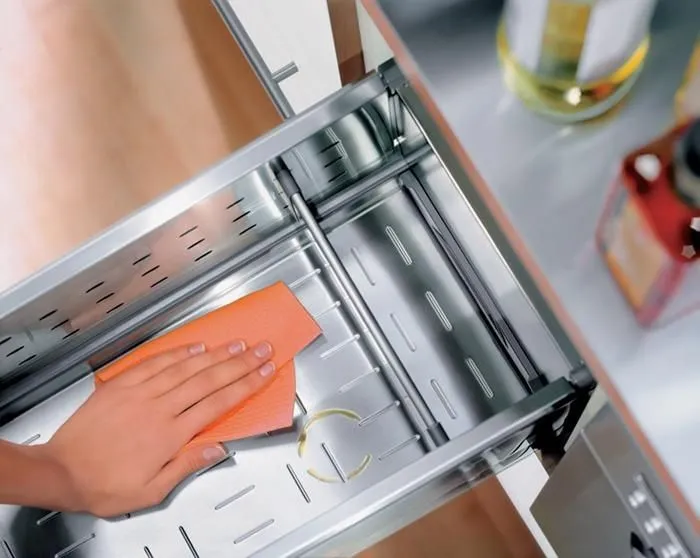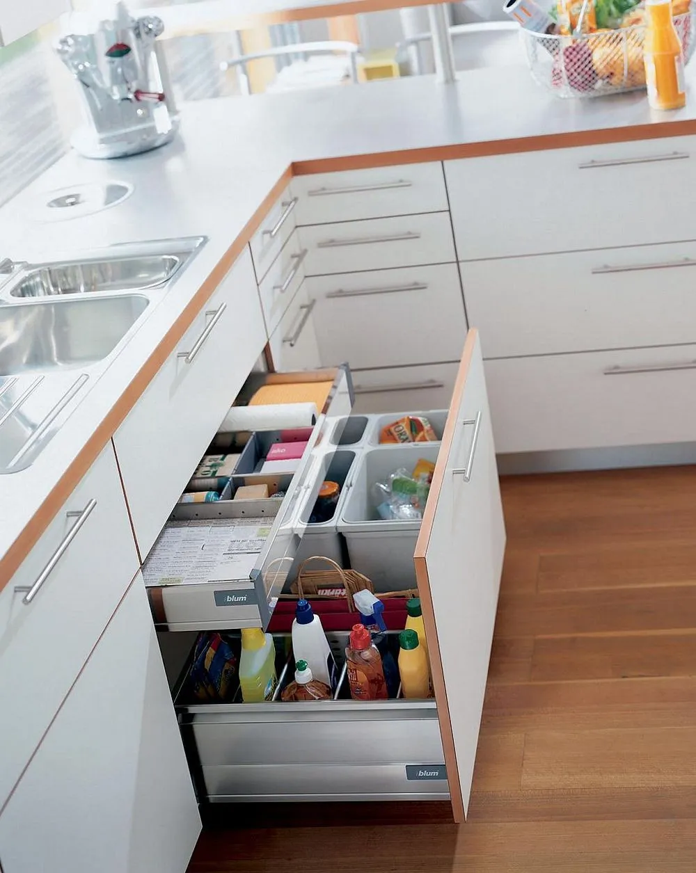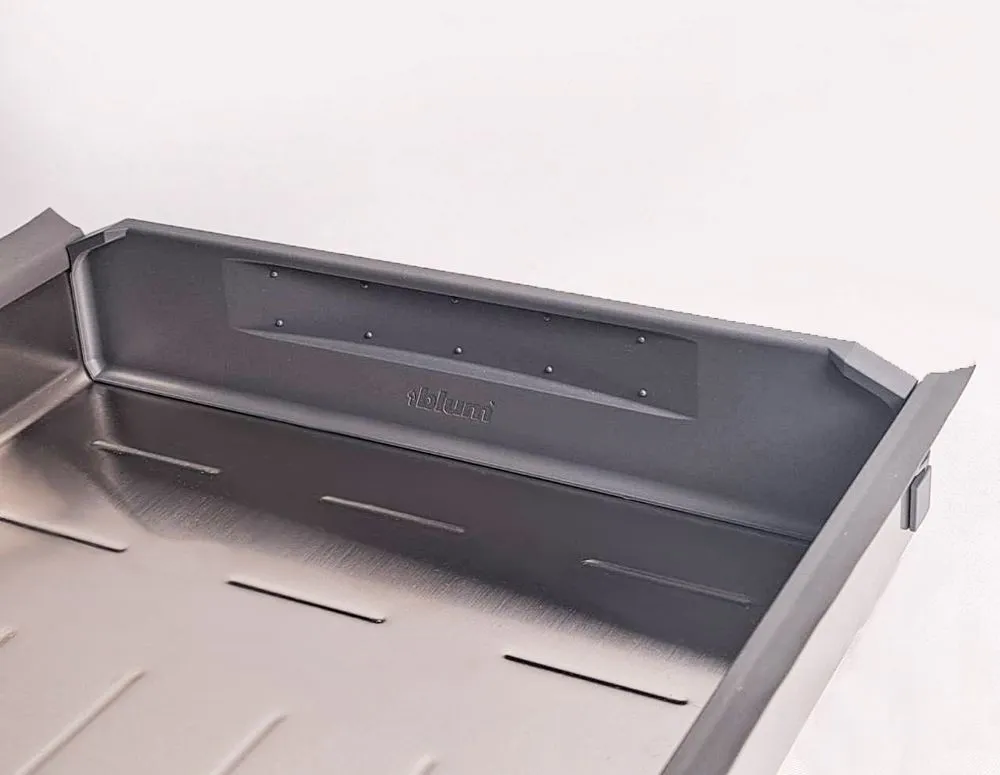 blum 瓶罐組+不鏽鋼滴水盤: 不同高度的瓶子都可在面板高抽裡安全擺放,靈活的橫隔板片能提供支撐固定,醬醋油等觸手可及,清潔衛生的瓶托盤由不鏽鋼製成,便於清潔。 產品優點: 1. 外型質感佳,能與 blum 滑軌做最佳的結合。 2. 為您打造井然有絮的儲藏空間。 3. 特殊的設計,能依需求,彈性調整隔板的大小與間隔。 4. 不論抽屜大小寬度,都能搭配使用。 5. 不鏽鋼滴水盤可取出,清潔容易。 6. 取代傳統台製小側拉籃,儲物空間更大。 應用範例 操作影片