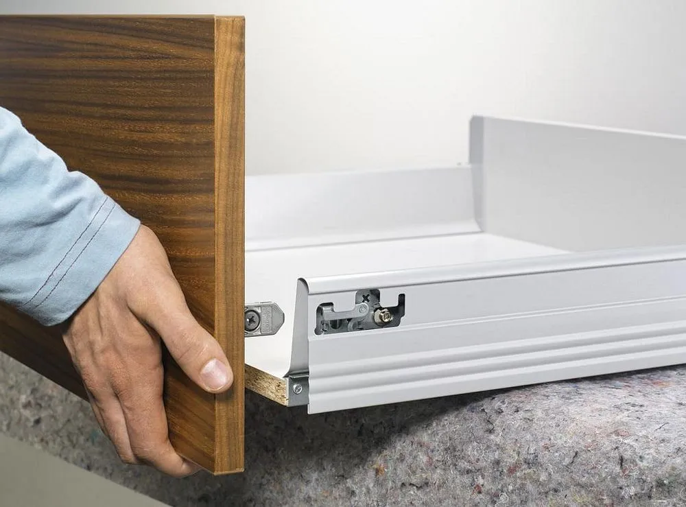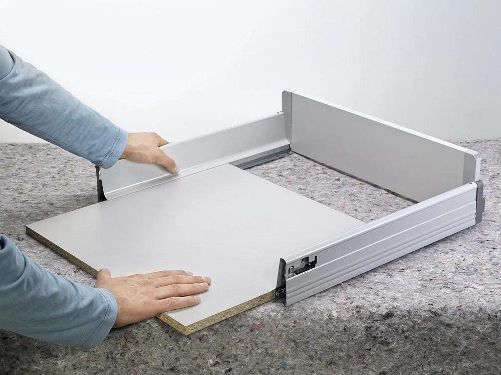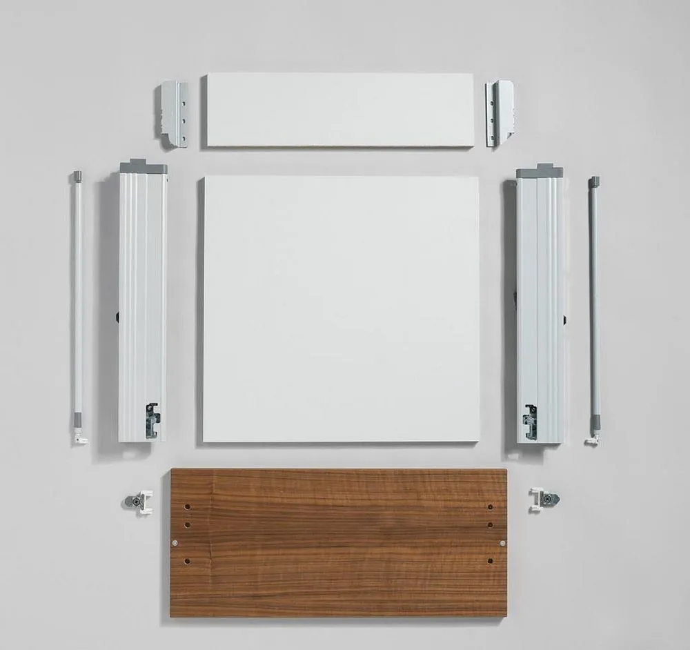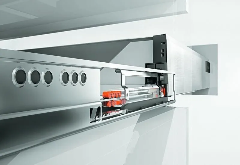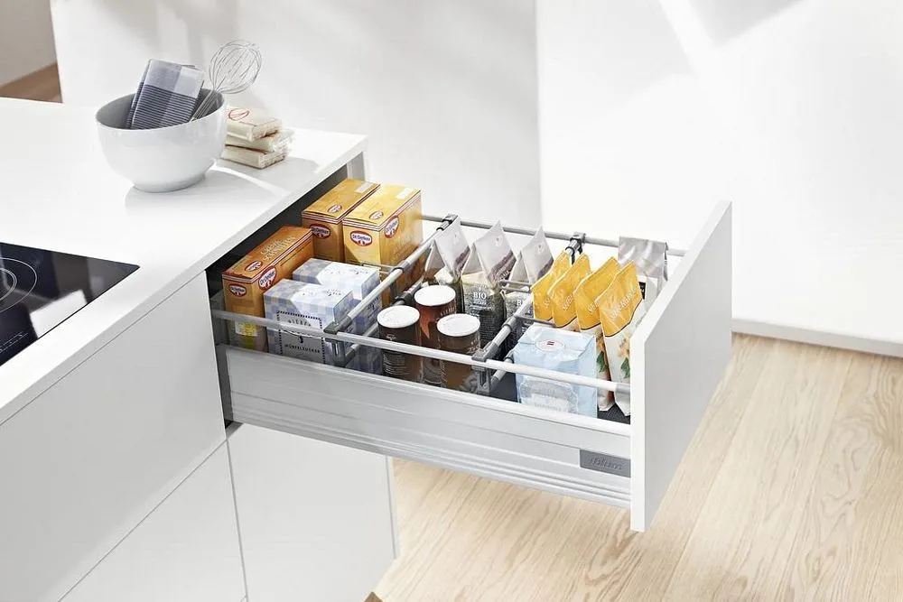 blum 的 TANDEMBOX 豪華金屬鋁灰抽滑軌,經過數百萬次的實踐證明,平穩順暢滑行的性能讓廣大客戶為之驚豔。BLUMOTION 緩衝阻尼則打造出輕柔關閉效果。完善的產品線(低抽、中抽、高高抽)和多功能內裝分隔配件,讓您能在面對客戶多樣化需求時,輕鬆找到合適的解決方案以及應用設計。