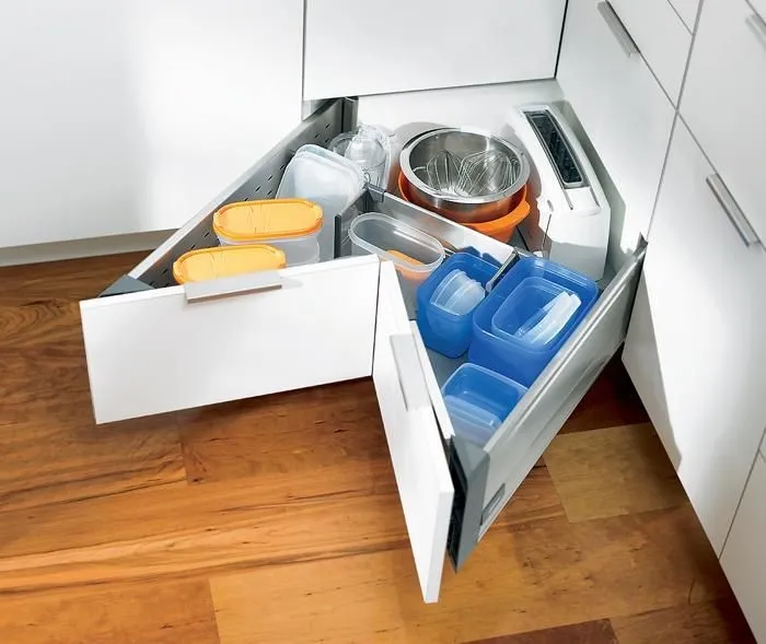 5. 取代傳統轉角小怪物拉籃,全展式抽屜,物品一目了然,拿取容易。