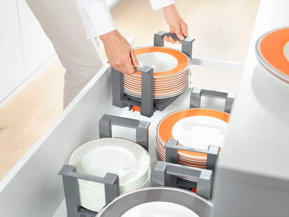 | blum AMBIA-LINE 麗拉內分隔配件-伸縮置盤架: AMBIA-LINE 麗拉專用內分隔系列中的方形伸縮置盤架,可依照盤子實際大小調整寬度,方便移動、拿取,搭配麗拉抽專用刀叉盤、分隔框,所有餐具與刀具一目了然且收納穩當。 可與麗拉抽內分隔其他配件做搭配,自由規劃出想要的空間分配,能與裁模器、刀叉盤、分隔框等搭配使櫃內井井有條。 產品優點: 1. 靈活性高,收納方便,一個置盤架最多可放12個盤子。 2. 為您打造井然有序的儲藏空間。 3. 有止滑功能,餐盤不會隨抽屜關閉而滑動。 4. 尺寸為 寬度18.6-32.2 cm,高度 17cm。 5. 適用於麗拉高抽配件。 6. 主體為不鏽鋼+塑膠材質。 |