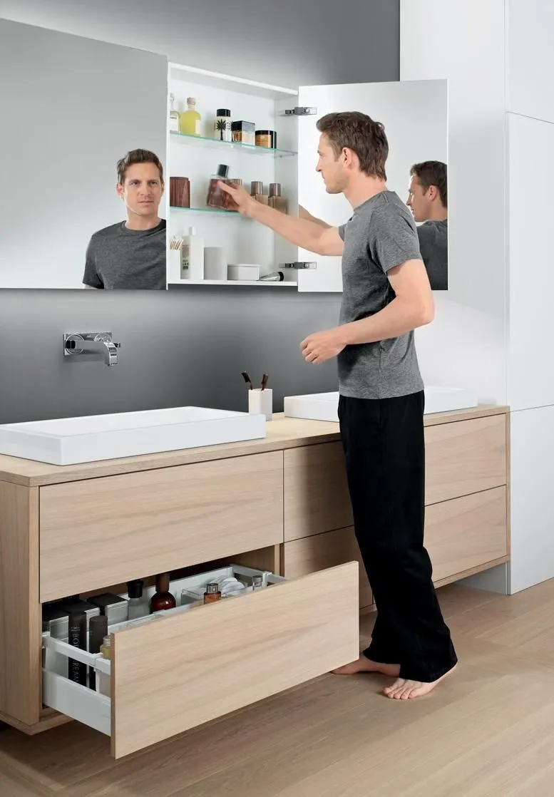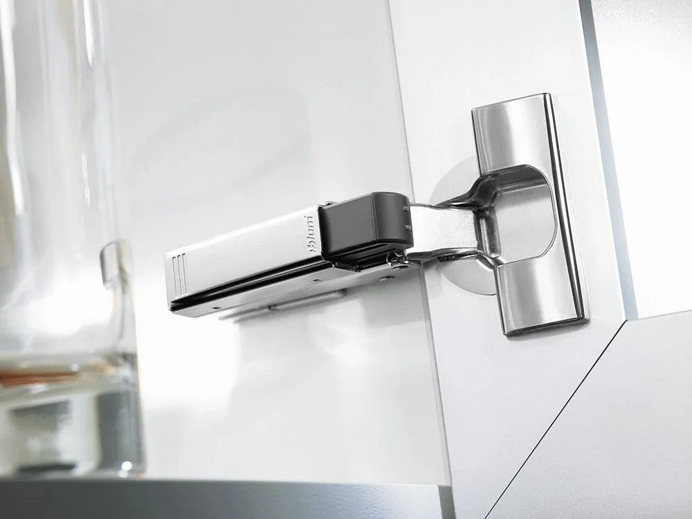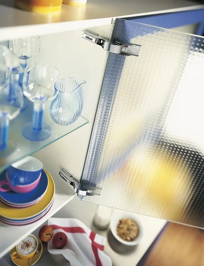 blum黏式鉸鍊: 黏式鉸鍊適用於無法挖孔的門板,例如: 玻璃、鏡門、(薄)大理石、不鏽鋼門片,鉸鍊杯能直接黏貼在門片上。且無分規格(如:6分、3分及入柱),可依不同的黏貼位置滿足不同的安裝情況。讓您能更自由地運用不同材質的面板,來完成更多不同的造型設計。