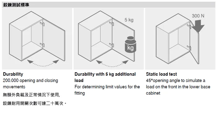 2. 全金屬鉸鍊,鉸鍊開關耐用次數達200,000次。