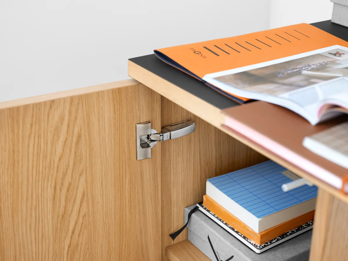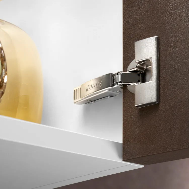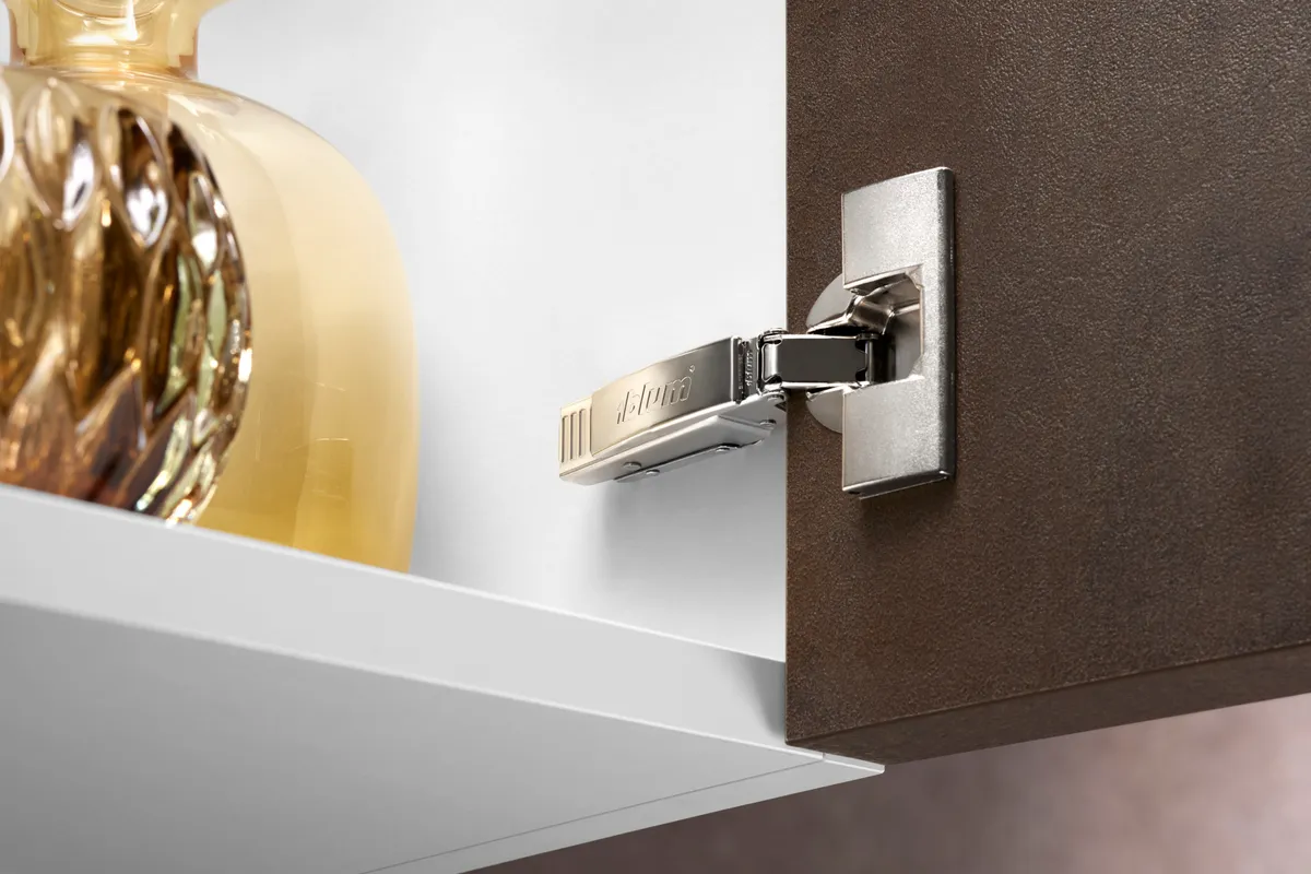 blum 快拆櫥櫃鉸鍊能完美地將穩定的功能與完美動感,安裝及調節的便利性和卓越設計融合在一起。另搭配 blum 智慧型可變緩衝阻尼配件,自動針對櫃門大小、重量和關閉速度靈活調整緩衝流速,讓櫃門運動一如既往的完美輕柔順滑閉合。鉸鍊有分一般薄門六分櫥櫃用及厚門八分門板用,規格另有6分、3分及入柱規格。搭配 blum 特殊底座可做分半及4分半。