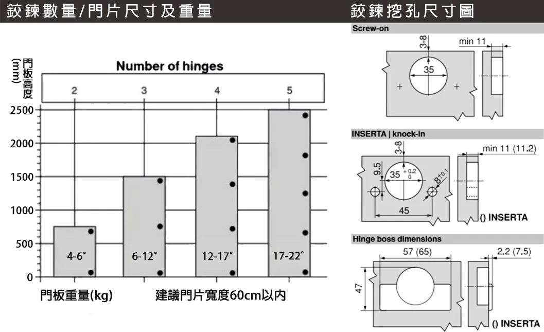 5. 71型厚門鉸鍊適用於21mm~27mm。